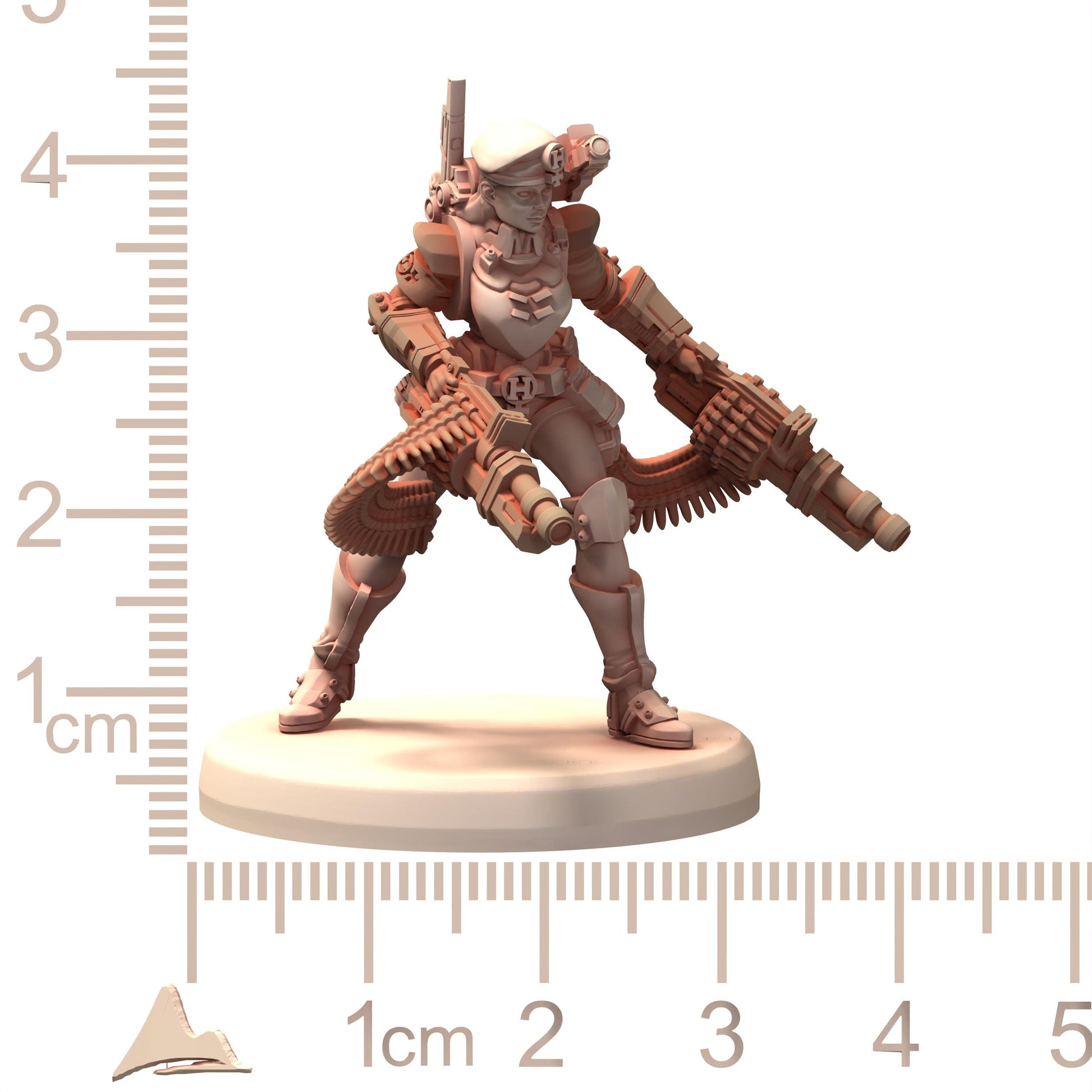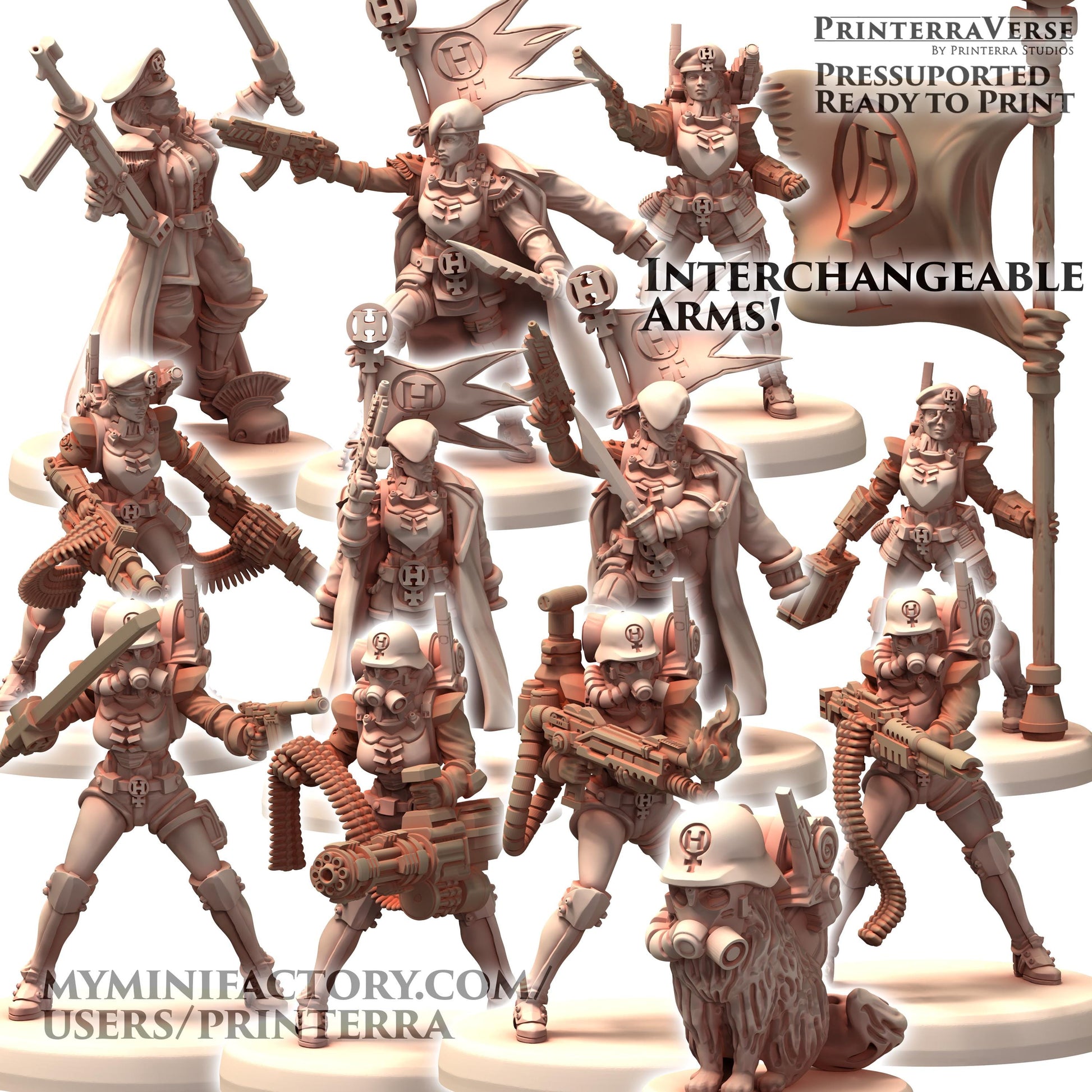 MILITARIA Herrschaft Soldatin Female Army with Gattling and Flamethrower - Printerra - Tabletop Wargaming Miniature for Grimdark OPR Sci-fi